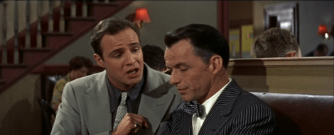 Simmons is particularly good as Sarah Brown, and she and Brando’s Sky Masterson share sparky chemistry. “Yeah, chemistry.” Blaine performs well as Miss Adelaide, and Nathan Detroit is nicely played by Sinatra, despite an apparent spat between him and Brando, and despite my co-goblin Alex hating him for some reason.
