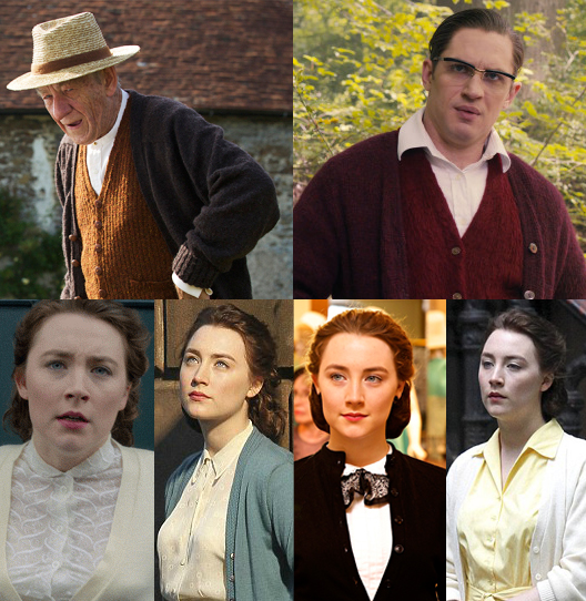 Will the cast of Shaun the Sheep the Movie please cover their eyes, as we come to the knitwear award. The nominees are: Saoirse Ronan for Brooklyn, Tom Hardy for Legend and Ian McKellen for Mr. Holmes. But the winner, in terms of raw thread count, is Saoirse Ronan! Congratulations Saoirse, you are the owner of a goblin statuette engraved with your misspelt name. DM