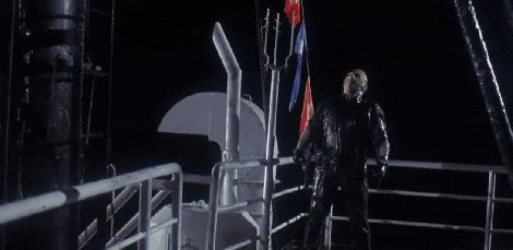 The only Friday the 13th film to share its subtitle with a Muppet movie, 1989’s Jason Takes Manhattan opens with a canoodling couple boating on Crystal Lake. Just as the horny teen drops anchor (both literally and euphemistically) we get another accidental resurrection (he is a teenage boy after all) and our hockey-masked chastity advocate is back on the rampage. And this time he can fly apparently.